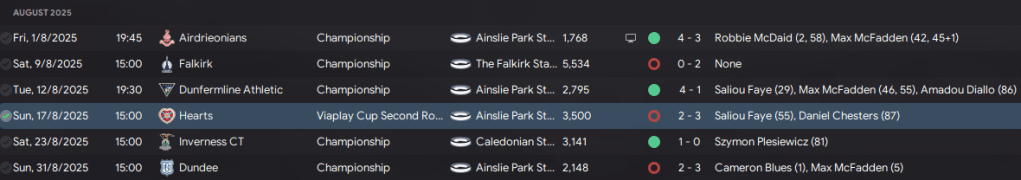 This is how our books look as we sit in August 2025. I’m never one for hugely monitoring finances as I’ve always managed bigger clubs where it isn’t really an issue. I don’t see any concerns yet as we have shown steady growth year on year. We still haven’t paid a single transfer fee for a player and I suspect that it will remain the case until we reach the top flight! Big cup runs will also be key to keeping the coffers healthy, and we’ve shown we can do it over the past two seasons.