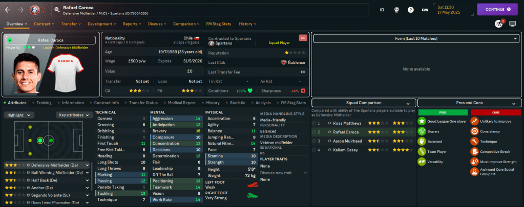 I’ve got to start with Saliou Faye, he looks like some talent. We were able to pick him up on a free after he was released by Generation Foot in Senegal. I haven’t quite decided where I am going to play him yet but I have no doubt he will be lighting up the league this season. Cameron Blues arrives on loan from Airdrieonians. This was a kick in the balls as he had agreed to join us on a free and then Airdrieonians triggered an extension. He joins us for now on a season long loan and will slot into defensive midfield. Rafael Caroca comes in to provide some experience and backup to Blues but I don’t expect to see him play all too much going forward.