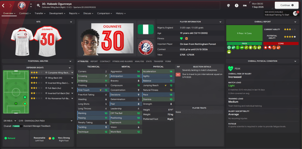 In the full back area I was also keen to strengthen, especially with Cropper leaving. Cesay and Water performed well last season but I wanted options ahead of this season. This saw the arrival of Colombian, Juan Jose Tello who made the brave decision to leave his native Colombia and settle in Edinburgh. At 23, he is well rounded and will no doubt add quality at left wing back. At right back we made two additions. Daniel Chesters joins the club after leaving West Ham and I was incredibly excited to get this deal done. He is an attack minded full back with excellent speed and cross. Defensively he’s not great, but our system puts us on the front foot so I am confident he will perform. Finally, I brought in Habeeb Ogunneye on loan from Nottingham Forest and he will add strength in depth at both centre back and right back.