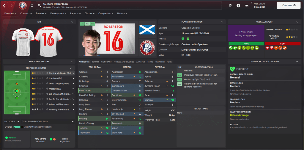 Surprisingly we were able to pick up James McConnell on a free after he left Liverpool. He’s not quite ready for first team action and so he’s gone to Montrose on loan for a season to get some first team experience under his belt. Kerr Robertson is another youngster that we’ve taken on and he will go out on loan. I’m unsure if he will ever be good enough but I think he’s worth a punt. Finally, we’ve managed to secure the services of Kyle Turner who joins on a free from Ross County. He has real technical quality and will be able to play at both CM and CAM in our system.