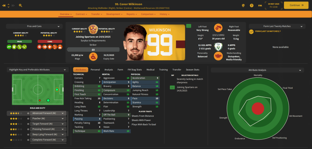 Now here is one I am really excited for and that is the loan signing of Max McFadden from Leeds United. I mean, just look at him! He’s got bags of talent, he’s technically very good and I just have a good feeling about him. Szymon Plesiewicz, Victor Musa and Daniel Cummings all arrive with some potential and I will look to find loan deals for them.