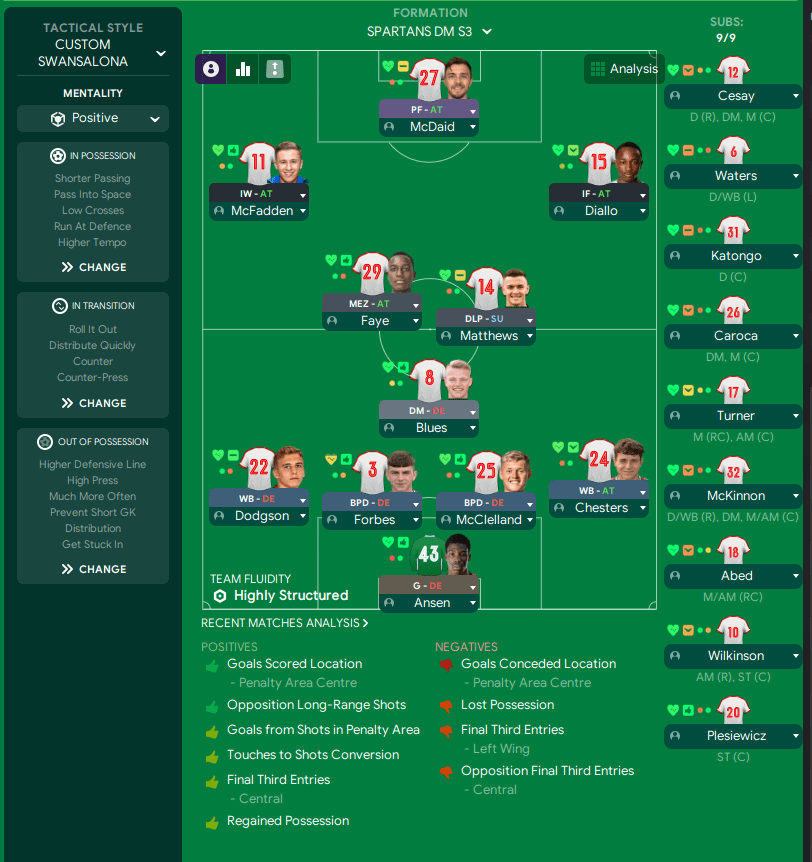 An injury to Amadou Diallo meant that he missed out on the second leg completely. Captain Ross Matthews retained his spot in central midfield after his hat-trick in the first leg. Conor Wilkinson recovered from injury to take a spot on the bench. Everything was set, it was now or never for Spartans.