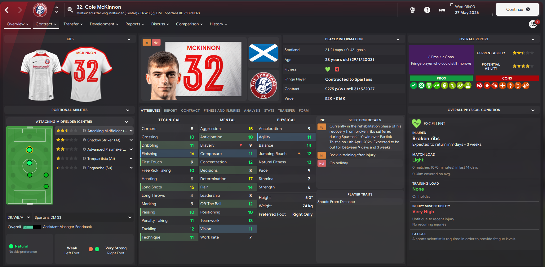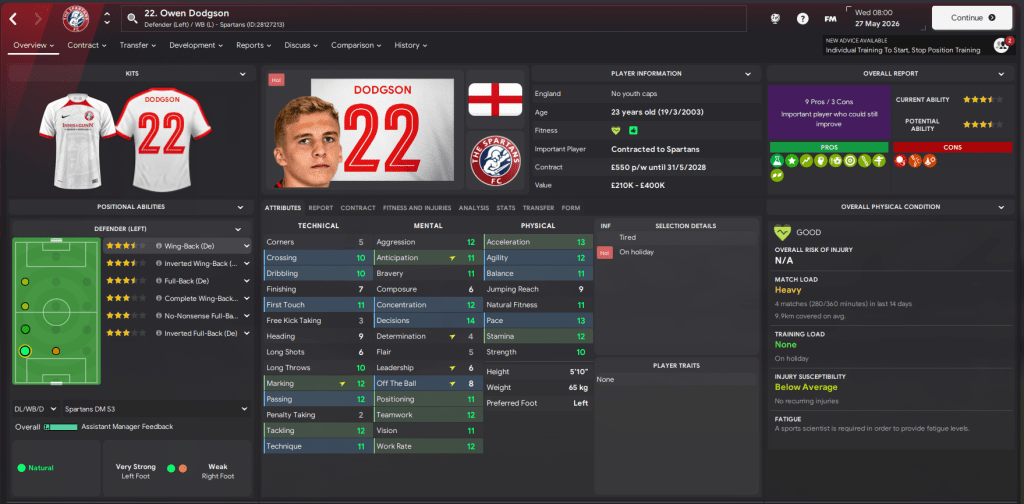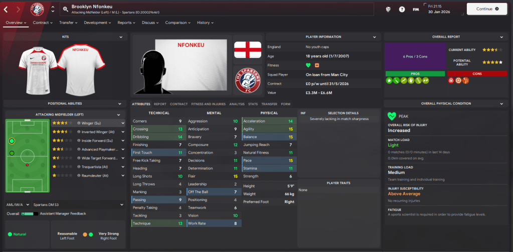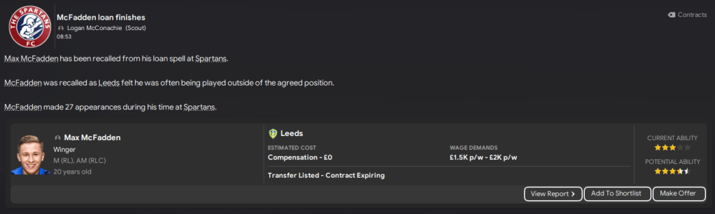 Arguably our best attacked over the course of the first half of the season is recalled by Leeds because he wasn’t playing in the agreed role. Whilst I see their logic, he played every game possible. It’s part of FM that really does infuriate me but it will also teach me to negotiate loan deals better in the future.