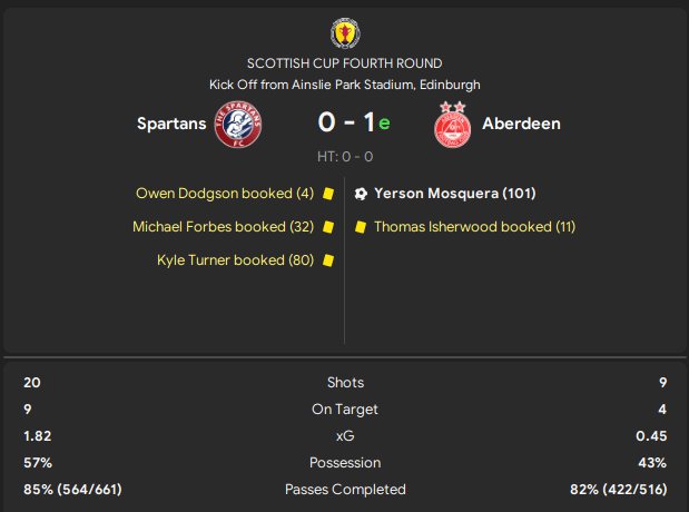 After beating Arbroath 3-1 in the Third Round, we were handed a tricky tie at home to Aberdeen. Despite a dominant performance we were unable to take our chances and in the 101st minute, Yerson Mosquera struck for the Premiership side and secured their path into the Fifth Round. A real kick in the teeth.