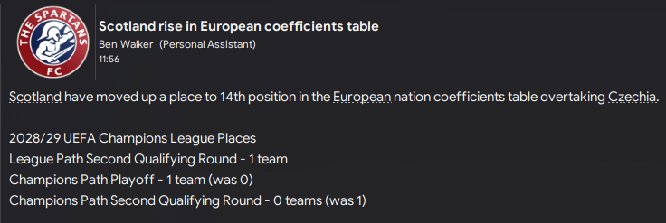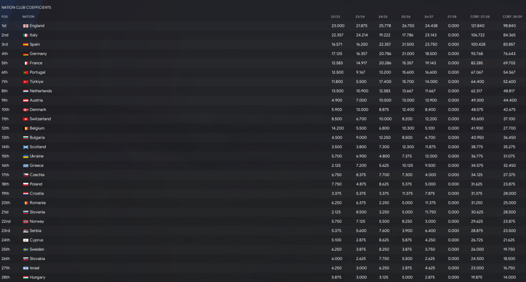 Still a long way to go until we look at breaking into the top 10 but another strong season for co-efficient points. Celtic reached the quarter-final stages of the Europa League before bowing out to Benfica 3-1 on aggregate. Rangers played in the League Phase of the Champions League but couldn’t make it any further.