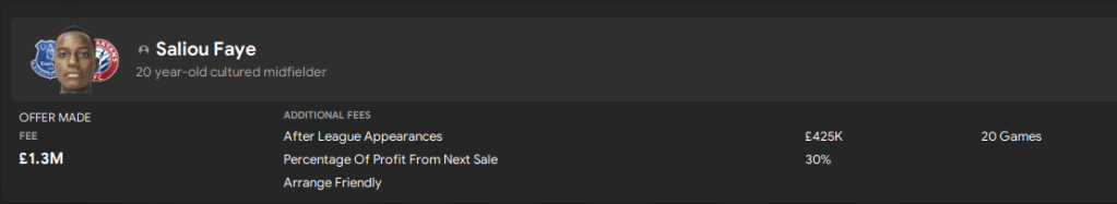 No real business of note in the January transfer window, except for Everton sniffing around Saliou Faye. We turned down an offer from the Merseyside club as there just wasn’t enough cash up front to make it worthwhile. They’ll be back in the summer for sure.