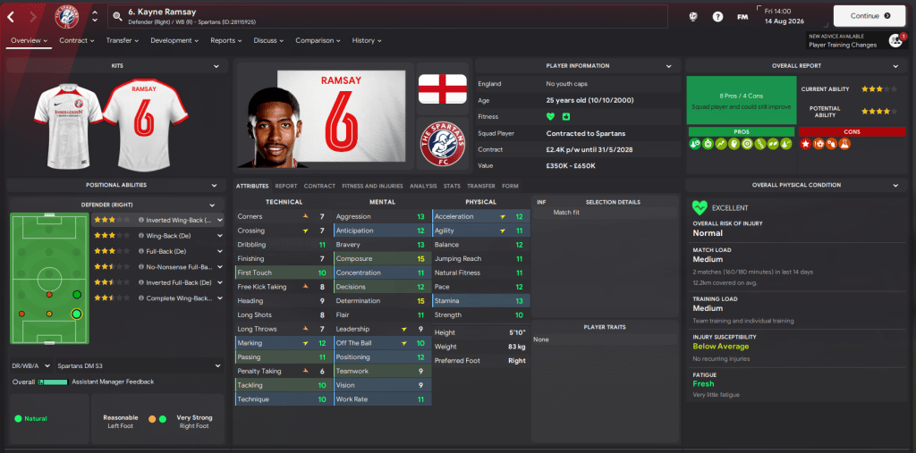 After a blind panic where Norwich wouldn’t accept my loan offer, they eventually agreed to let us have Caleb Ansen back for another season. I do very much think this will be his last season with us as he is outstanding and I am sure he will either be playing for Norwich very soon, or snapped up by a top club.