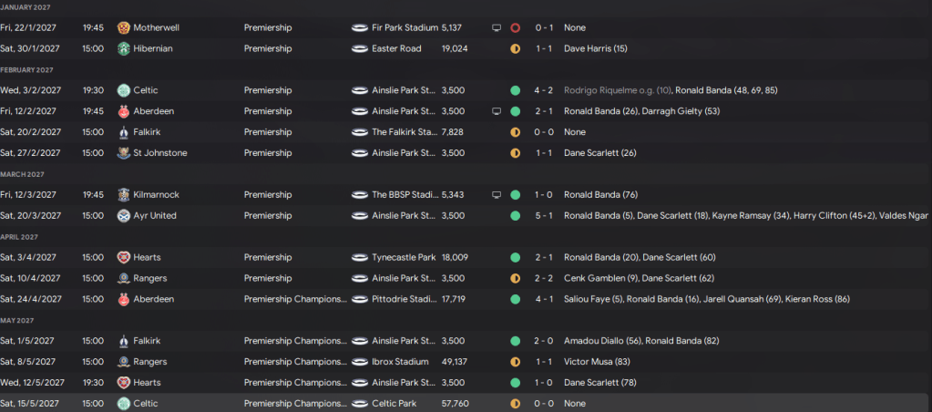 An absolutely outstanding first 5 months in the SPL as we only lose twice, to Falkirk and Hearts. Some huge results thrown in there, including a 3-1 win over Celtic and two wins over Rangers in convincing fashion! Surely we couldn’t? We were simply looking to survive in the SPL at the start of the season.