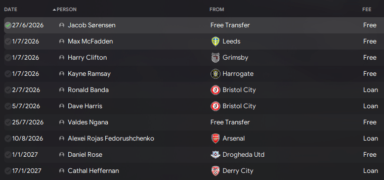 Incredibly, Derby were willing to let us have Cenk Gamblen on loan for the entire season. He is an elite talent and slots in as our Mezz. Harry Clifton arrives as our new defensive midfielder and he looks a solid option to operate as an Anchor for us in this system. Valdes Ngana arrives from Juventus as the natural successor to Saliou Faye and we will benefit from valuable game time this season. Finally, Jacob Sorenson, formerly of Norwich arrives to add some experience into the squad.