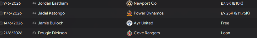 A fairly predicable summer of outs, with players leaving on frees to free up some wage budget but also a couple of transfer fees received. Daniel Cummings leaves for a club record of £15,000, along with Jordan Eastham and Jadel Katongo who both failed to make the cut in the Championship.